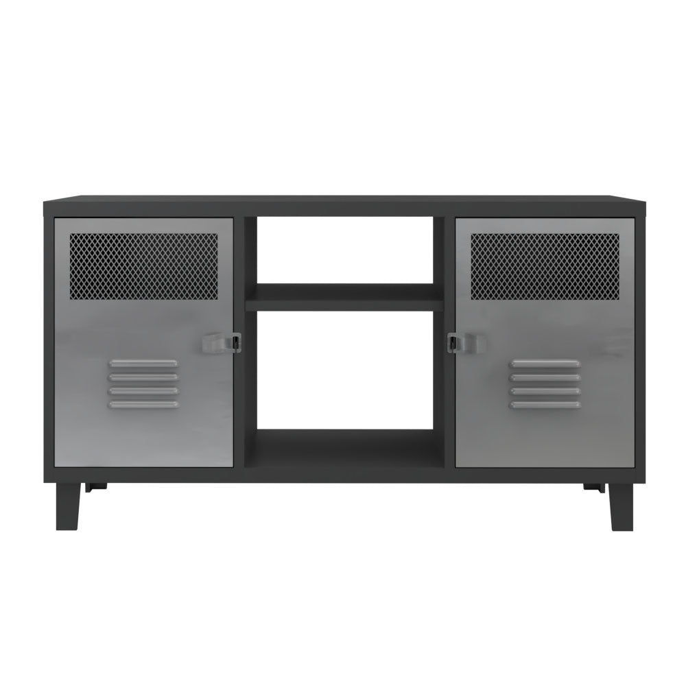 Rack TV Rock Bicolor Cuerpo Negro Puertas Acero