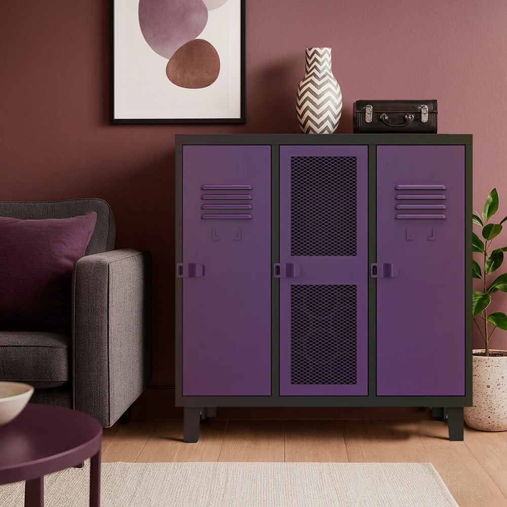 El Bar Rock Bicolor Cuerpo Negro Puertas Violeta  es la solución perfecta para usar en tu dormitorio, una pieza única de diseño gracias a su cuidada estructura de acero y su arquitectura minimalista. Nuestros veladores rescatan la esencia más moderna y urbana del estilo industrial, en donde predominan los colores duros y los materiales fríos, sin duda una gran alternativa para entregar la belleza y vanguardia que buscas para tu hogar.
