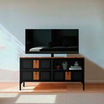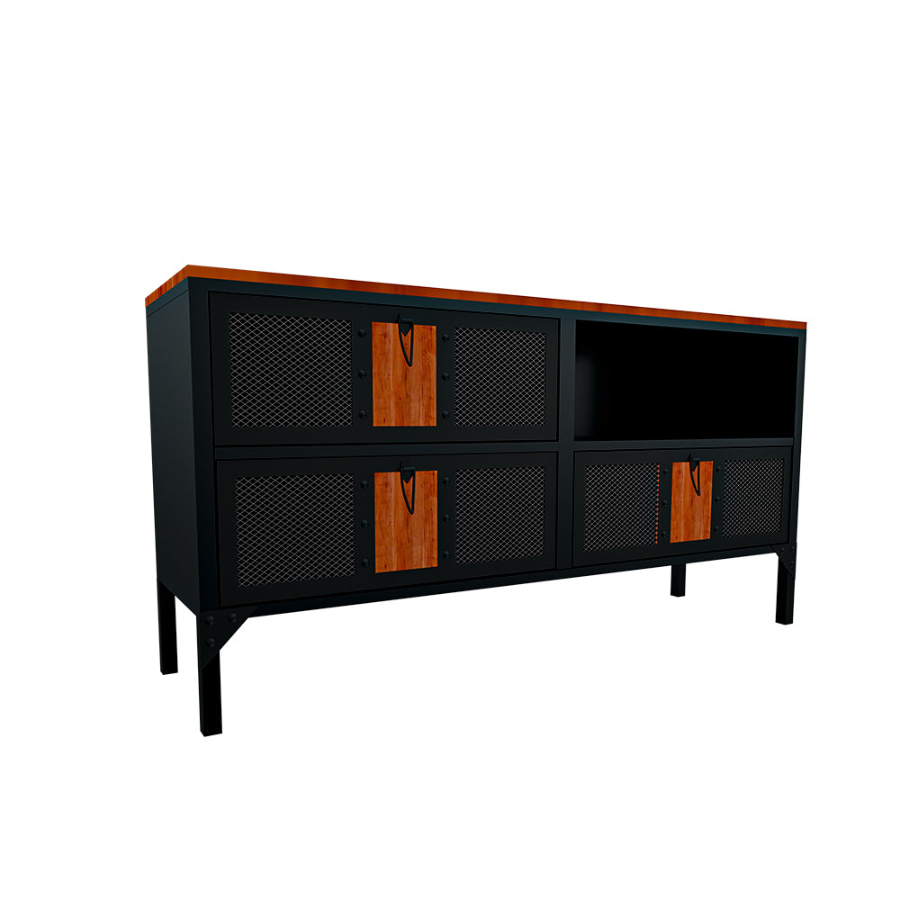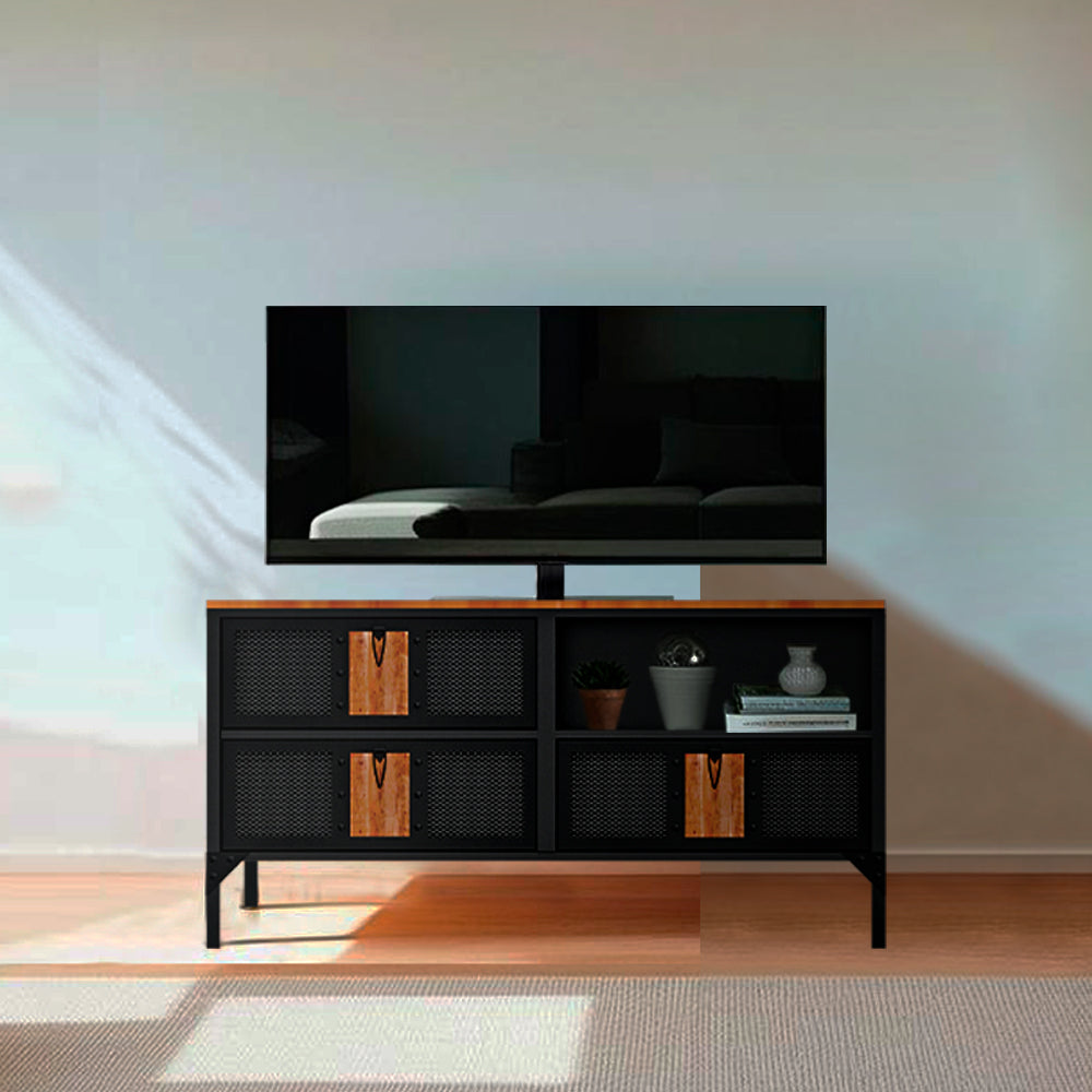 Estante 3C Roots Negro Mate Este rack se une a nuestra línea Roots tiene capacidad para soportar televisores de hasta 65'', es resistente y tiene un amplio espacio para guardar objetos en su interior. La madera le da un toque de sutileza combinado con el acero, sin duda una excelente opción para decorar tus espacios.